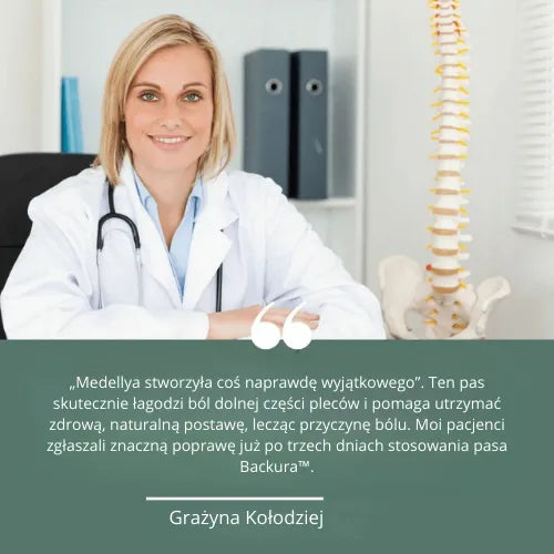 „Medellya stworzył coś wyjątkowego. Ten pas bardzo skutecznie łagodzi bóle pleców i pomaga utrzymać zdrową, naturalną postawę, eliminując przyczynę bólu. Moi pacjenci zauważyli znaczną poprawę już po trzech dniach stosowania pasa