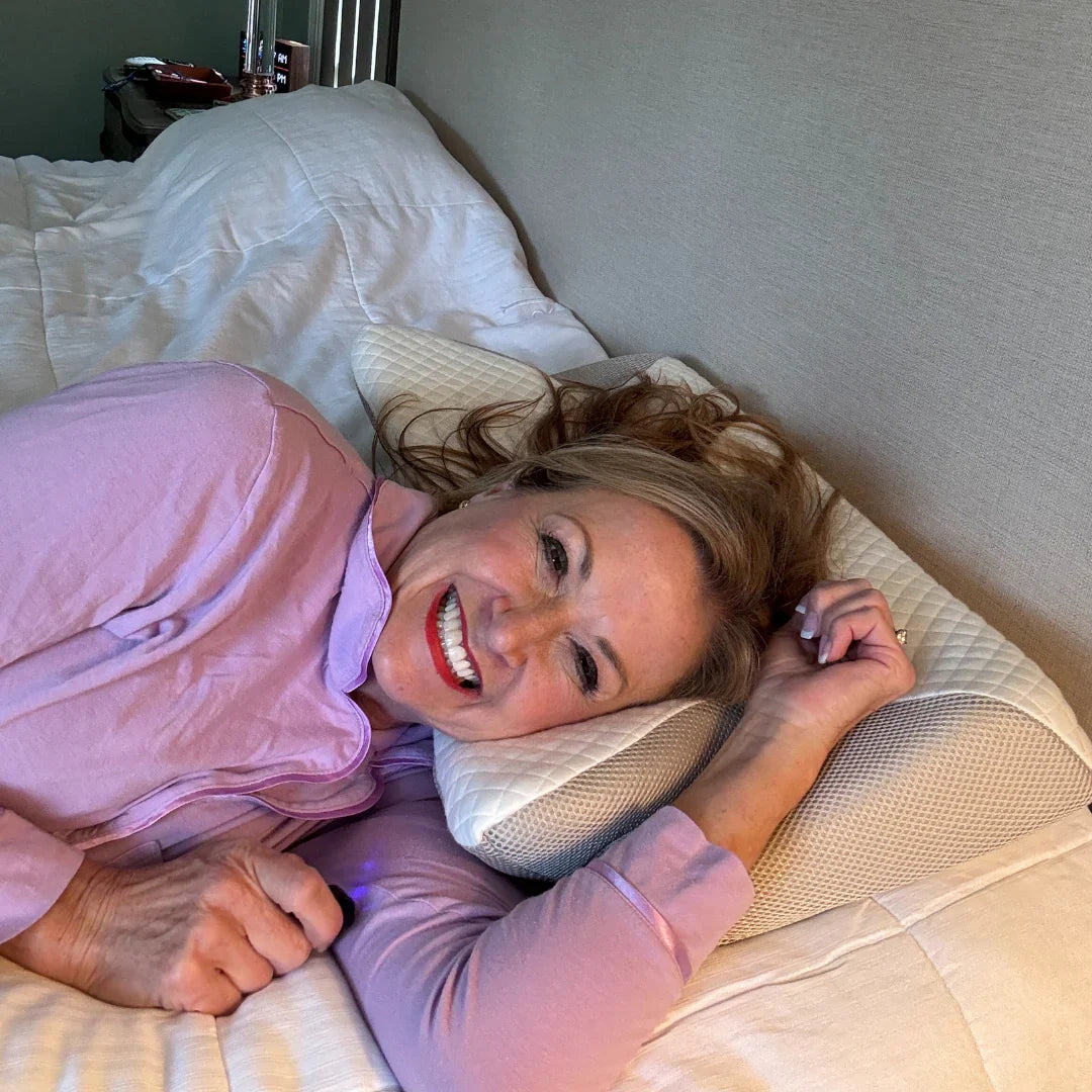 Jak pomaga Serenight™: Jego ergonomiczny kształt utrzymuje głowę i kark w prawidłowej pozycji, lepiej wyrównując drogi oddechowe. To pomaga zmniejszyć przerwy w oddychaniu i wspiera głębszy, nieprzerwany sen.