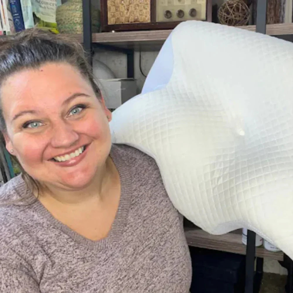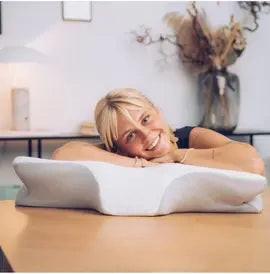 Przyczyny: Tradycyjne poduszki zmuszają ramiona do zginania się pod nienaturalnymi kątami, powodując sztywność i ból, który rozprzestrzenia się na górną część ciała.
